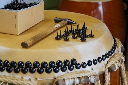 Il s’agit des fixations métalliques permettant de fixer les peaux sur le corps de certains types de tambours japonais. Ils sont généralement en forme de punaises.